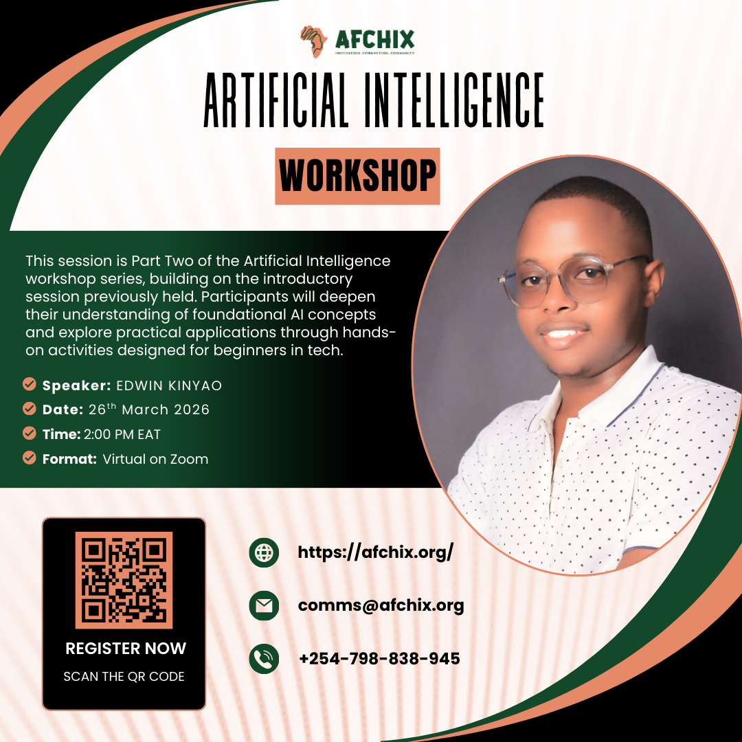 On 26 March 2026, AfChix will host Part Two of the Artificial Intelligence Workshop designed to build on the concepts introduced in the first session. The hands-on session will deepen participants’ understanding of foundational AI concepts and explore practical applications, helping women in tech strengthen their skills and continue their AI learning journey.
